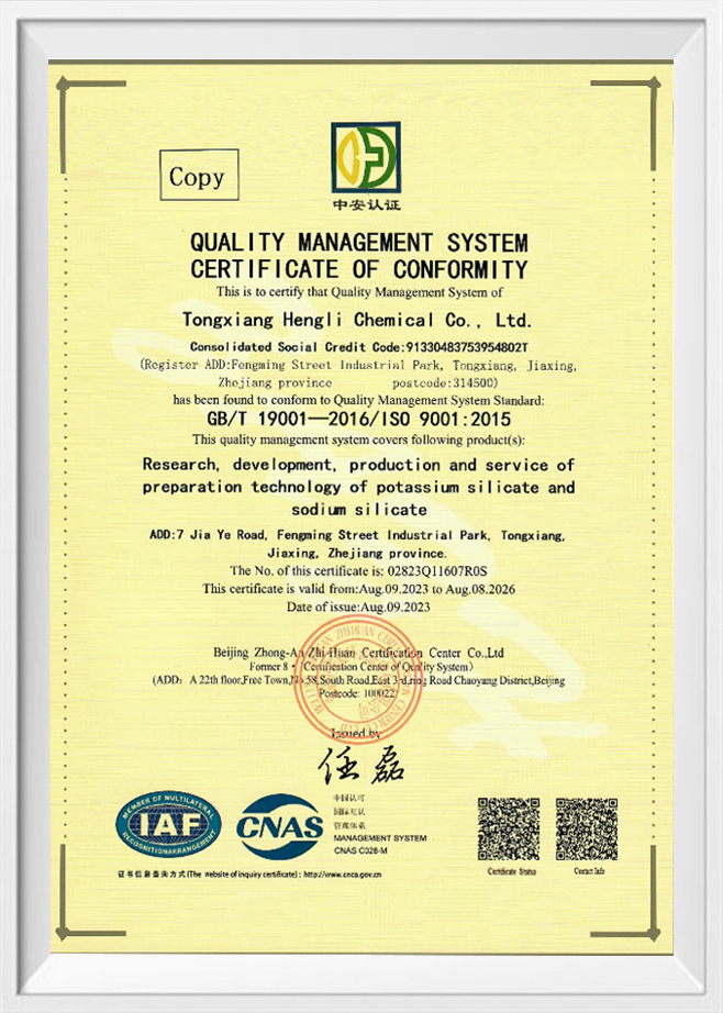 Tongxiang Hengli Chemical Co., Ltd, som en professionel producent af uorganiske siliciumprodukter, har akkumuleret rig erfaring i produktionsprocessen af flydende kaliumsilikat. Virksomheden er altid opmærksom på kontrol af produktkvalitet og har etableret et komplet kvalitetsstyringssystem ved at introducere avanceret produktionsudstyr og testinstrumenter. Med hensyn til at undgå overdreven polymerisation eller gelering af flydende kaliumsilicat har virksomheden truffet følgende foranstaltninger: